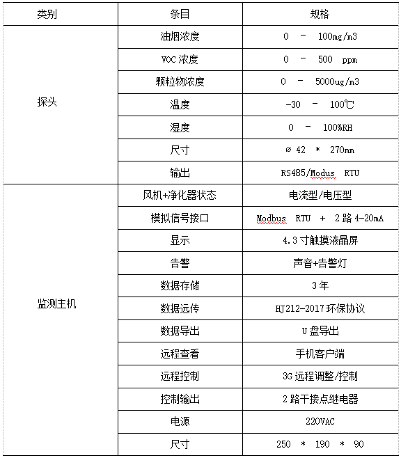 對油煙排污數據的監測,包括油煙排放濃度,顆粒物,NmHc等數值采集監測;同時對監控風機和凈化器的啟停狀態、運行數據進行監測。