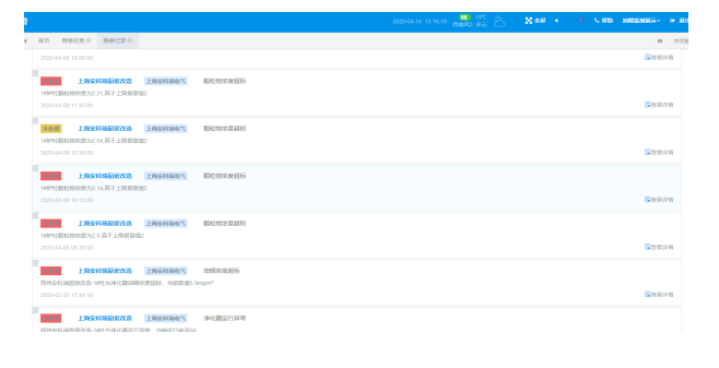 系統根據采集的油煙數值大小,產生對應的排放超標告警;對凈化器的運行數據分析,上傳凈化設備對應的運行、停機、故障等告警事件。