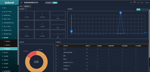 智慧消防管理云平臺包含了智慧用電子系統、防排煙子系統、消防水子系統、消防設備電源子系統、防火門子系統、消防設備管理子系統和視頻監控子系統等。智慧用電子系統可以接入電氣火災、孤航電弧、電氣火災主機、滅弧式保護器探測器和無線測溫探測器等。點擊智慧用電子系統進入智慧用電監控頁面,點擊菜單顯示整個項目的基礎信息和該項目下的所有探測器的信息,點擊末級節點顯示具體探測器的監控頁面。