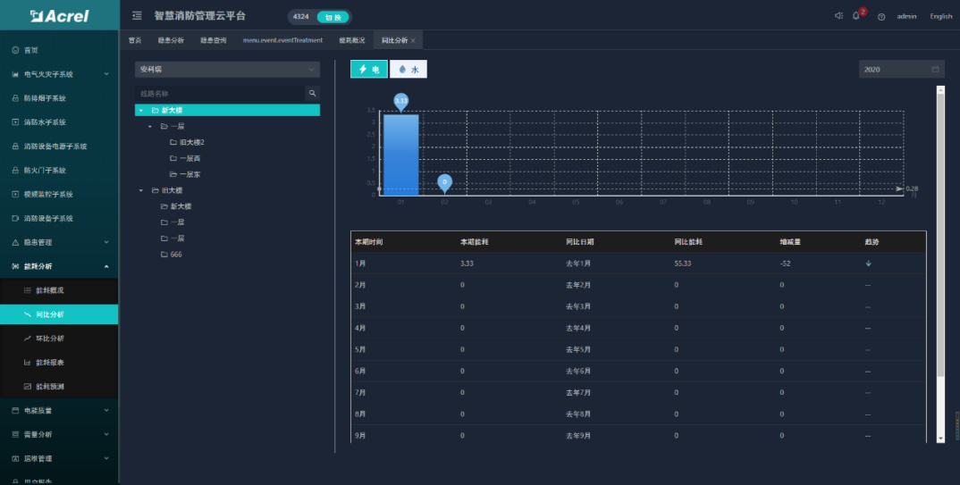 操作系統,方便用戶查看電氣火災、防排煙、消防水、消防設備電源、防火門、消防設備管理、視頻監控、火災報警等子系統的實時監控數據、報警信息、能耗統計等。