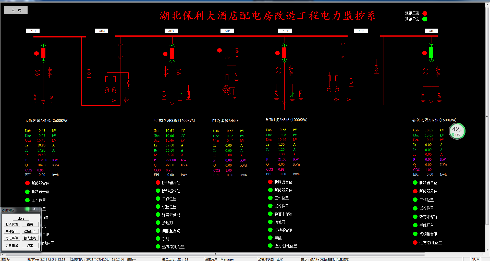 內各配電回路的運行狀態,對負載越限具有彈出報警對話框
