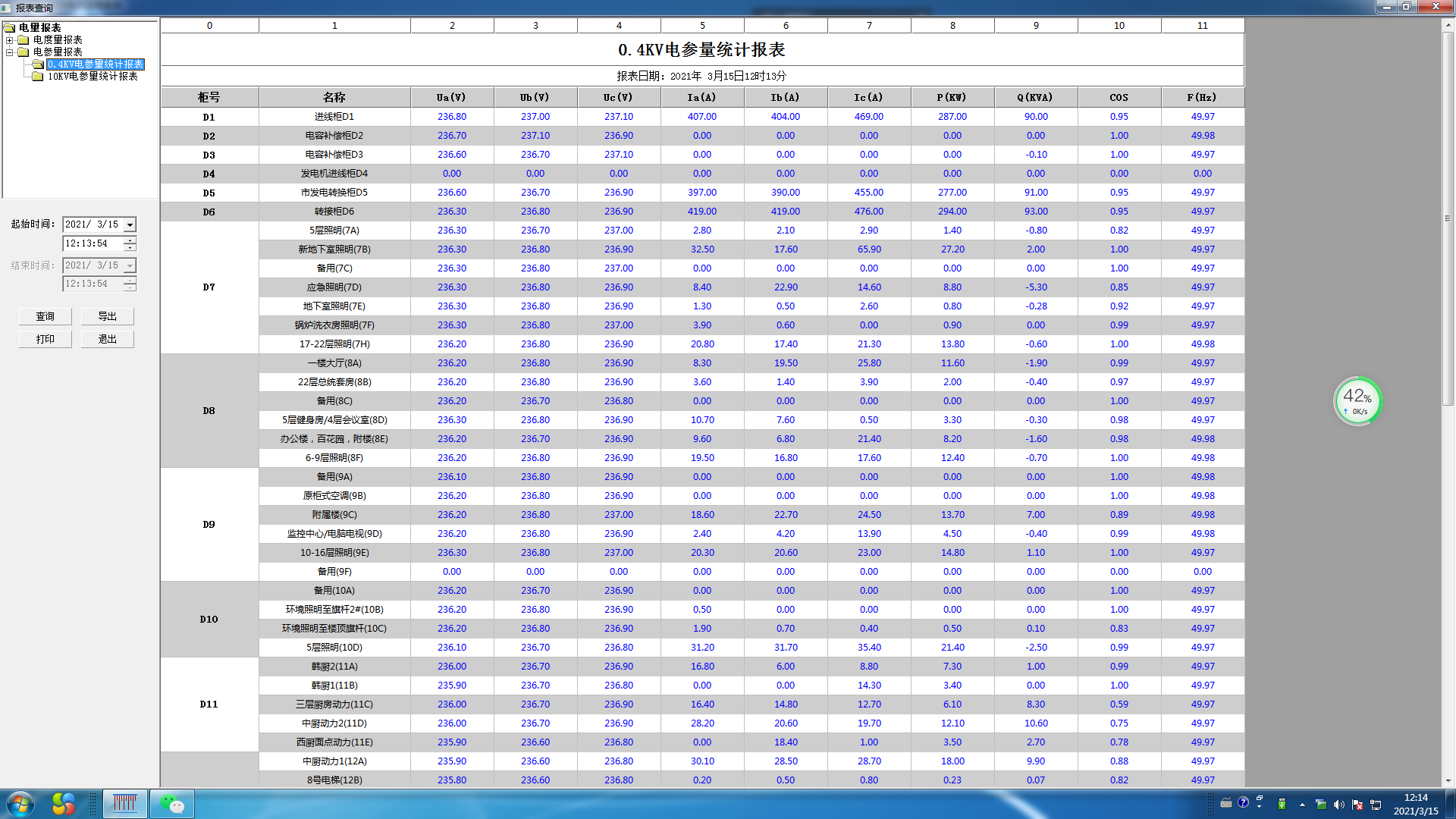 詢。支持任意時刻電參數查詢,具備數據導出和報表打印等功能。
